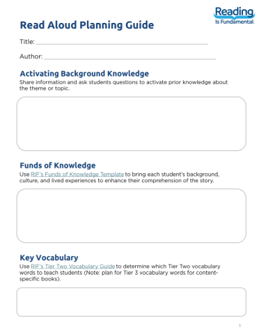 Use this template to plan daily intentional read alouds to enhance students' knowledge, vocabulary, higher-order thinking, and cross-content connections.